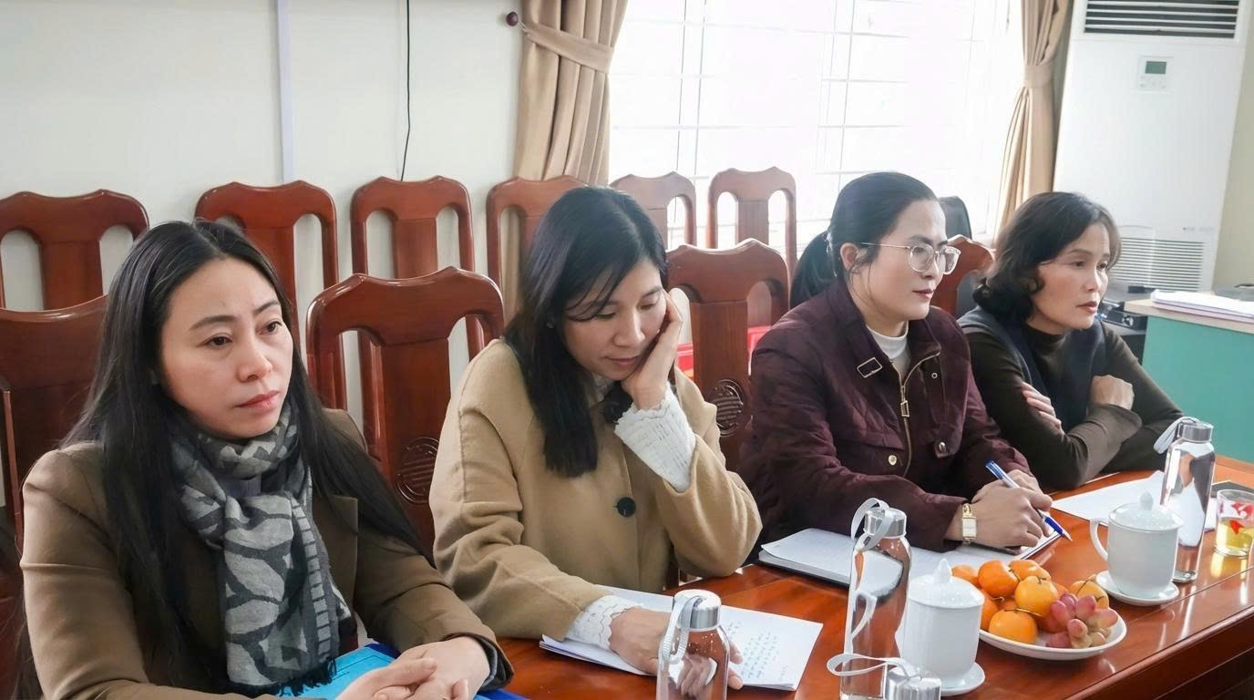 Trước khi bước vào buổi làm việc, Đoàn công tác đã đi tham quan, khảo sát thực tế tại Trường Mầm non Xuân Phúc, xã Yên Thọ.