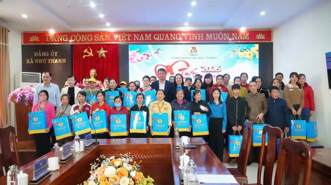 Chiều ngày 28/01/2026, Công đoàn xã Như Thanh đã tổ chức Chương trình “Tết sum vầy – Xuân ơn Đảng” năm 2026 nhằm chăm lo đời sống vật chất, tinh thần cho đoàn viên, người lao động, đặc biệt là các đoàn viên có hoàn cảnh khó khăn trên địa bàn xã nhân dịp Tết Nguyên đán Bính Ngọ 2026.