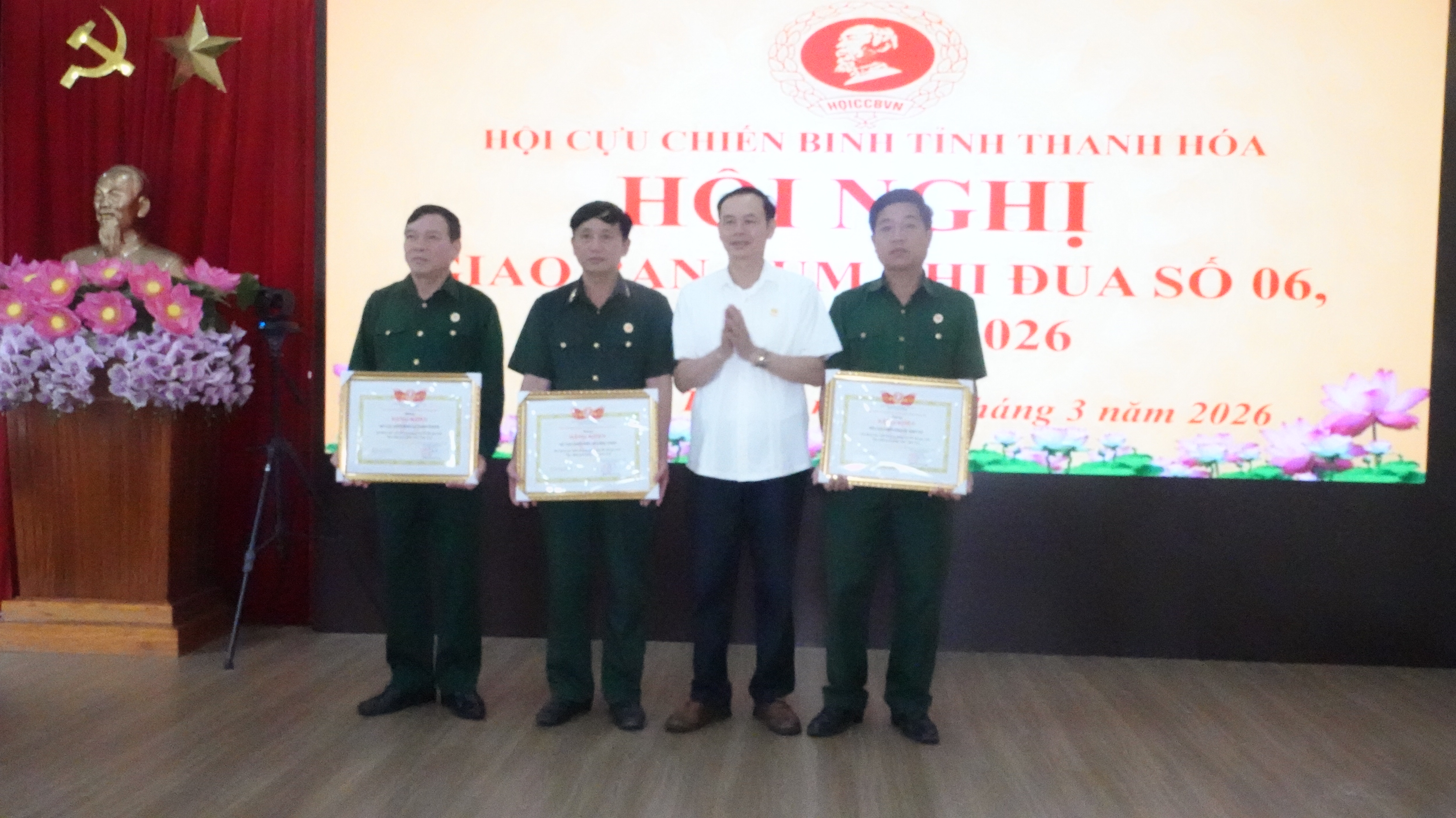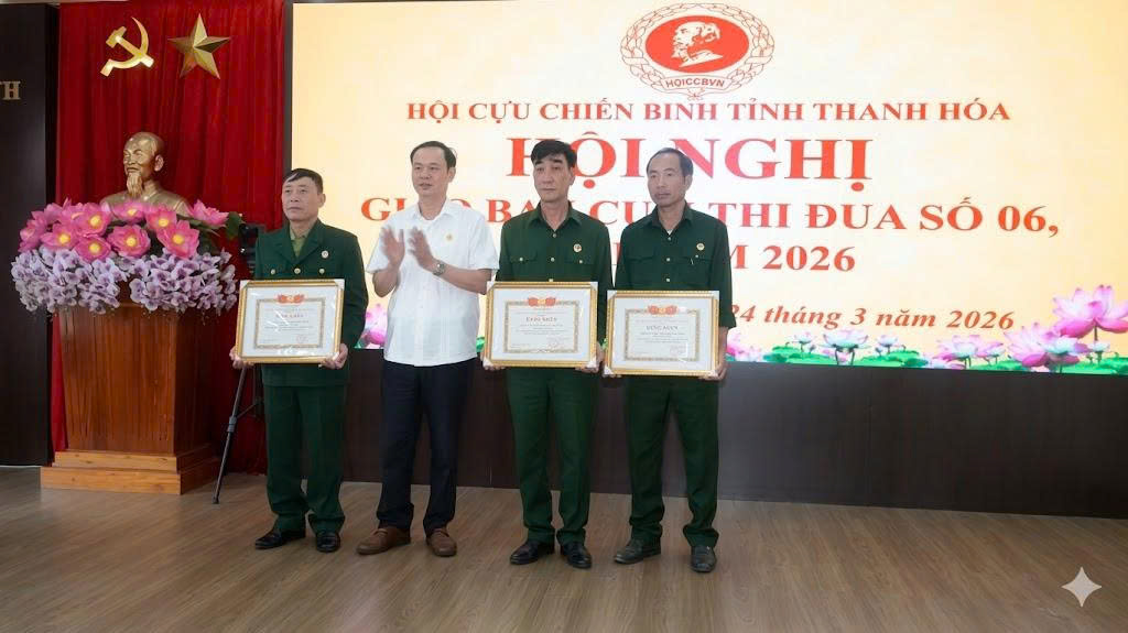 Nhân dịp này, Hội CCB tỉnh Thanh Hóa đã trao Giấy khen cho các tập thể và cá nhân có thành tích xuất sắc trong phong trào thi đua và công tác Hội năm 2025. Đây là sự ghi nhận, biểu dương kịp thời những đóng góp tích cực của các cấp Hội và hội viên trong việc thực hiện nhiệm vụ chính trị tại địa phương, đồng thời là động lực để các đơn vị trong Cụm thi đua số 6 tiếp tục phát huy tinh thần đoàn kết, nỗ lực phấn đấu, hoàn thành tốt hơn nữa nhiệm vụ công tác Hội trong thời gian tới.