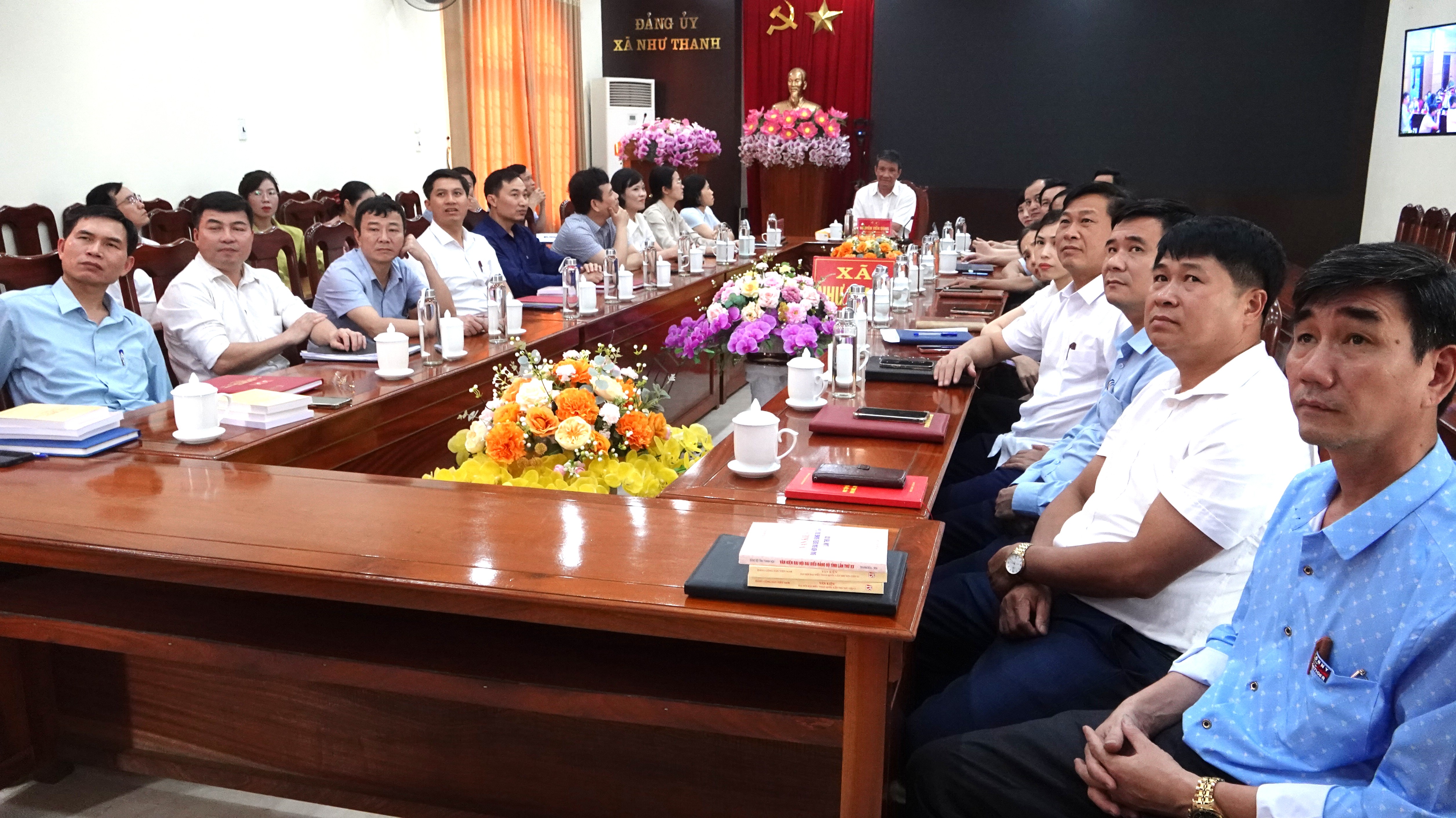 Tại điểm cầu xã Như Thanh đồng chí Nguyễn Tiến Dũng, Bí thư Đảng uỷ chủ trì hội nghị. Tham dự hội nghị có đồng chí Lê Thuý Lan, Phó bí thư Thường trực Đảng uỷ, Chủ tịch HĐND xã; Các đồng chí uỷ viên Ban Thường vụ Đảng uỷ; các đồng chí Uỷ viên Ban chấp hành Đảng bộ xã; trưởng, phó các cơ quan tham mưu, giúp việc Đảng uỷ xã, MTTQ, các đoàn thể, trung tâm chính trị, các phòng, trung tâm thuộc UBND; uỷ viên uỷ ban kiểm tra xã.