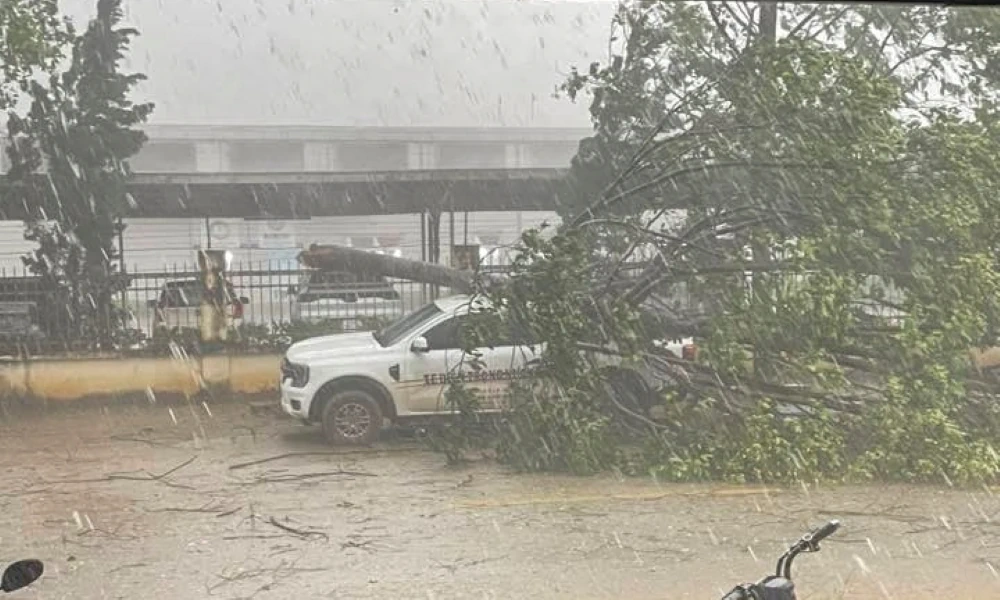 Mưa lớn gây đổ cây đè lên ô tô của người dân xã Ngọc Lặc.