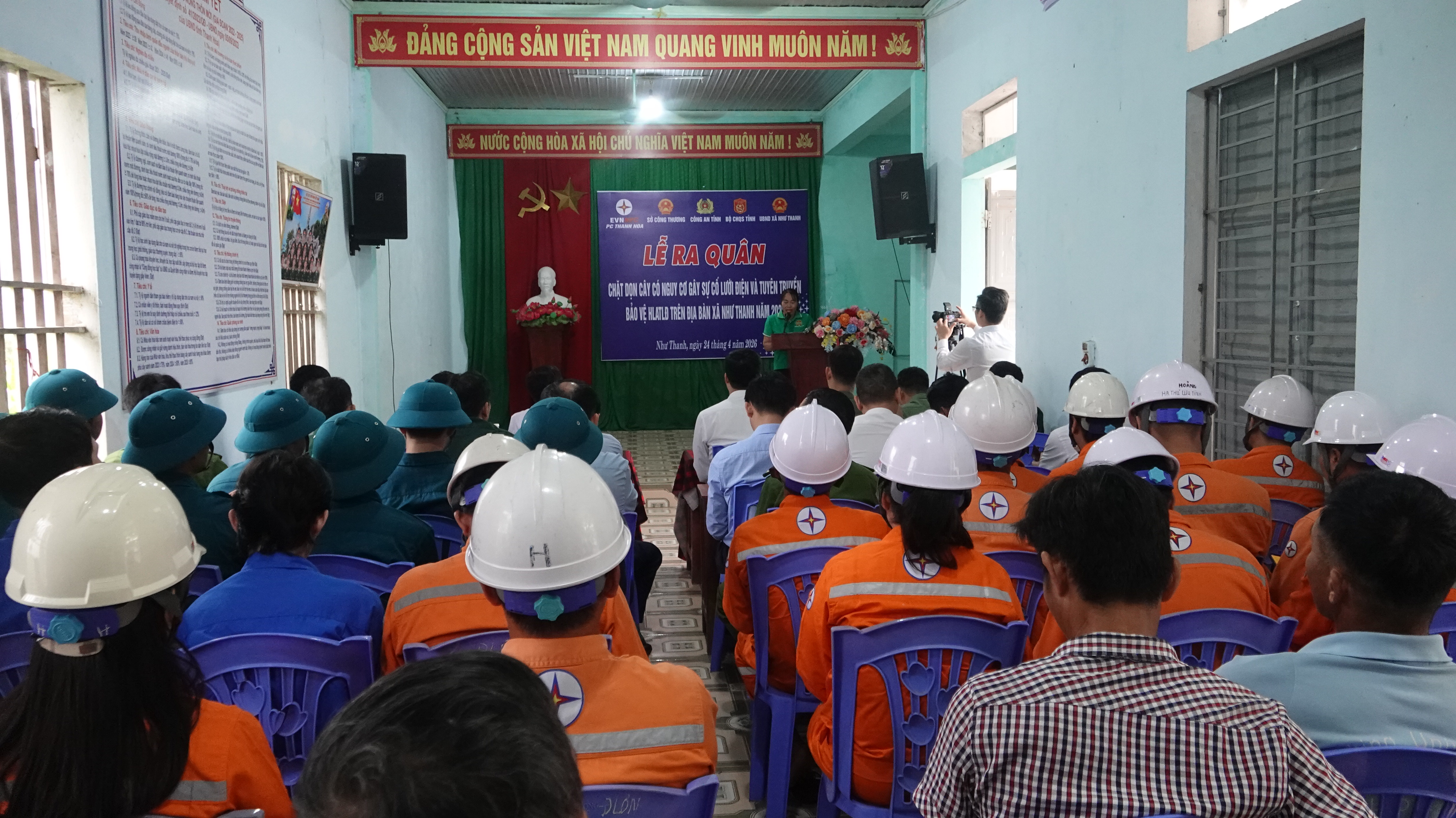 Tại lễ ra quân, Công ty Điện lực Thanh Hóa và các đơn vị phối hợp đã huy động cán bộ, công nhân viên cùng lực lượng công an, quân sự, dân quân tự vệ, đoàn thanh niên và người dân trên địa bàn xã Như Thanh tổ chức phát quang cây cối trong và ngoài hành lang có nguy cơ vi phạm khoảng cách an toàn lưới điện tại khoảng cột từ cột 24 đến cột 30 NR Tân Long lộ 373 E9.52; xử lý các tồn tại, khiếm khuyết trên lưới điện để giảm thiểu sự cố...