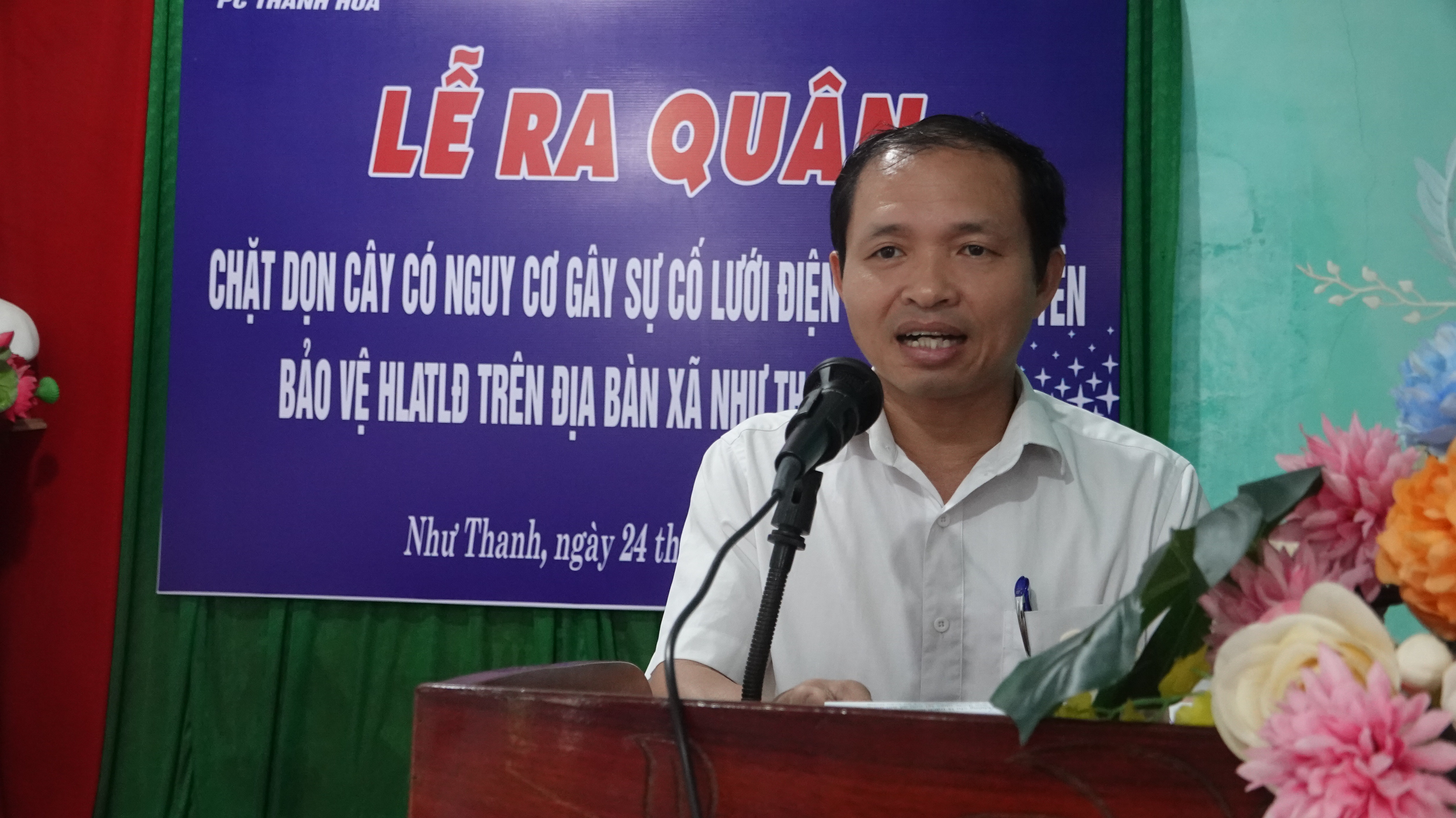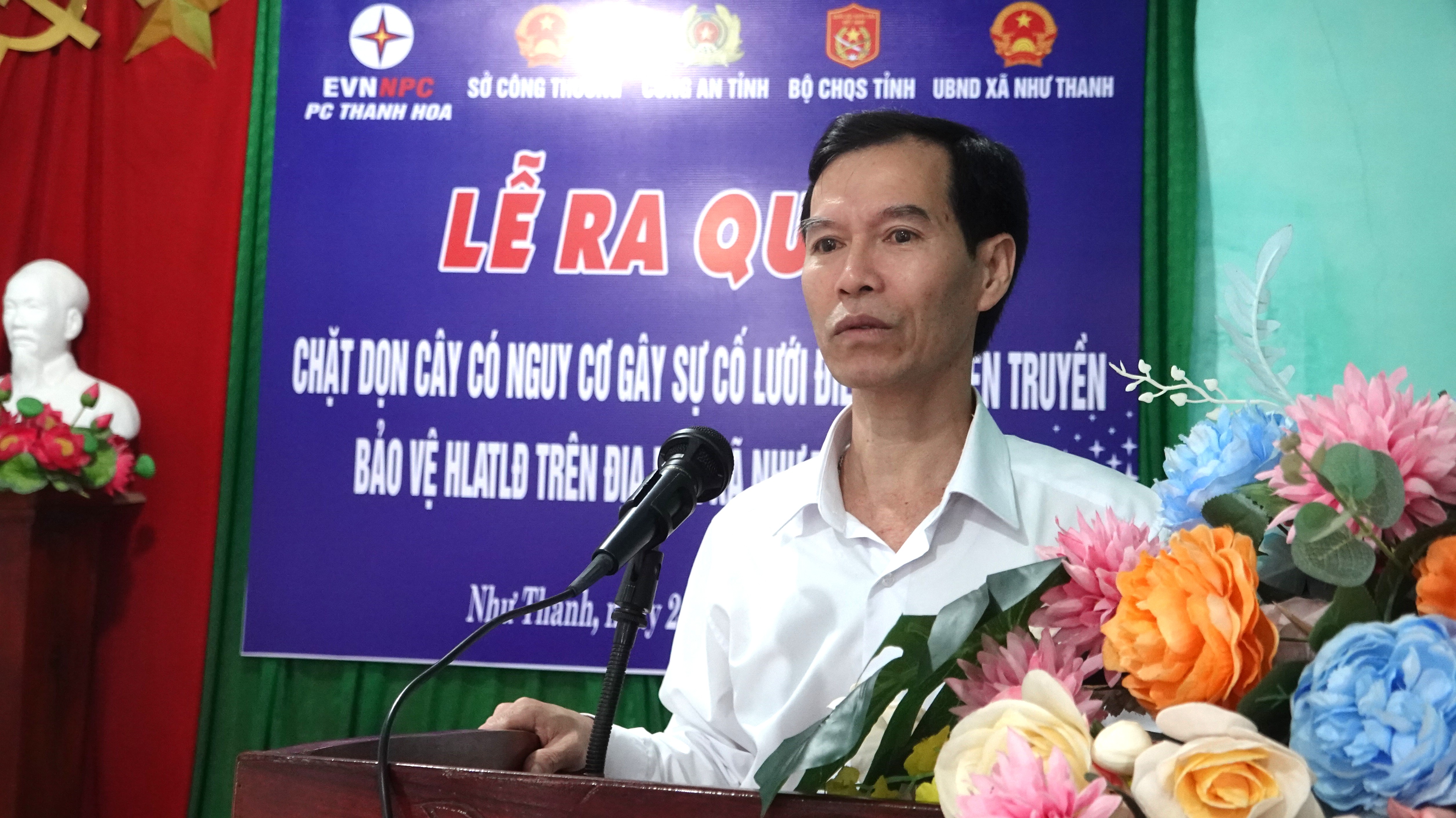 Ông Hoàng Đức Hậu, Phó Giám đốc Công ty Điện lực Thanh Hóa cảm ơn các đơn vị, người dân đã chung tay cùng ngành điện bảo vệ hành lang an toàn lưới điện cao áp.