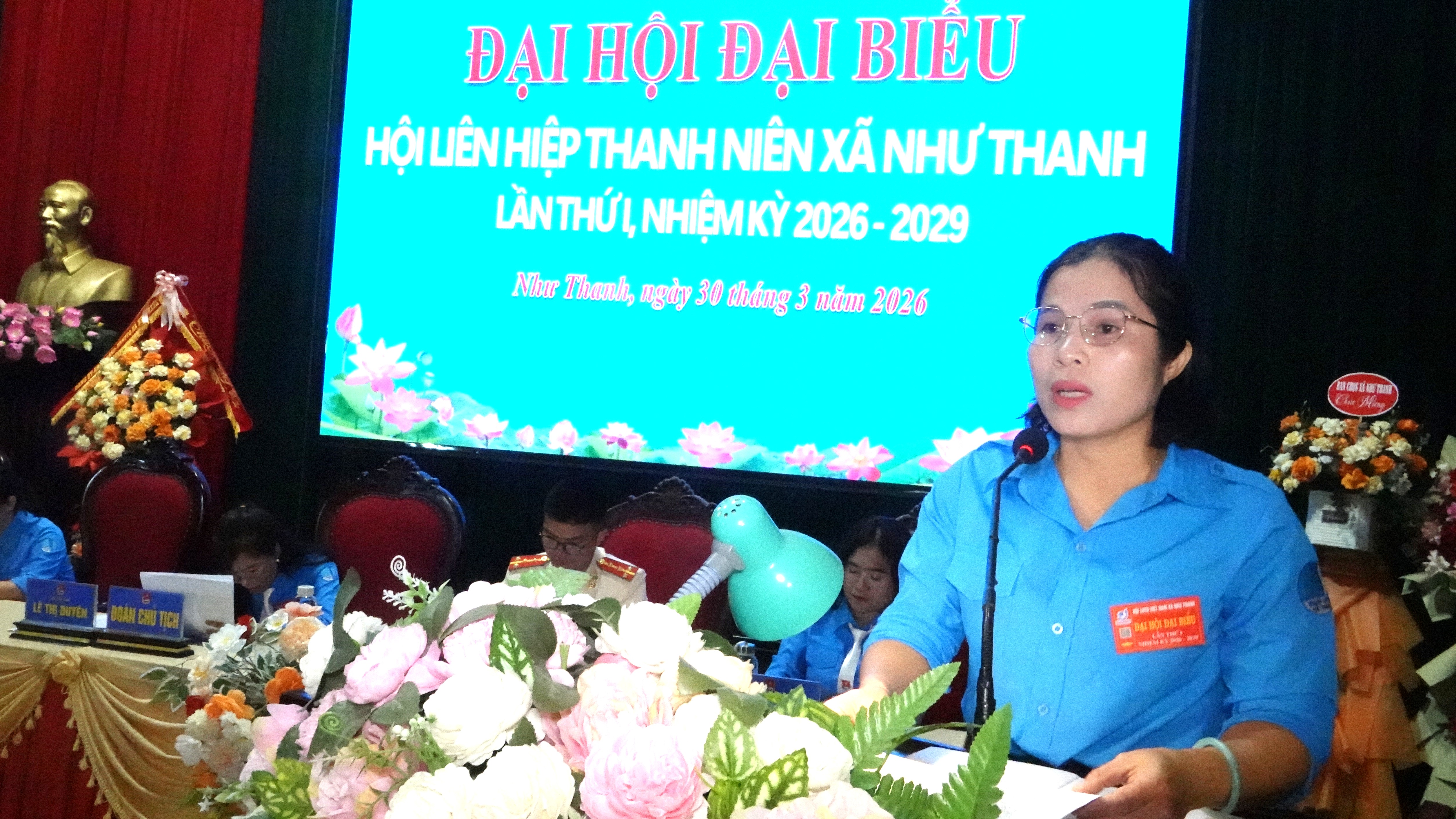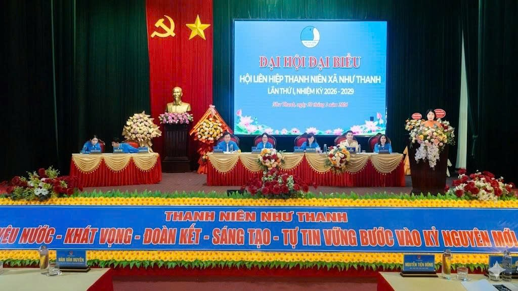 Chiều ngày 30/3/2026, Hội Liên hiệp Thanh niên Việt Nam xã Như Thanh, đã long trọng tổ chức Đại hội đại biểu lần thứ I, nhiệm kỳ 2026 2029. Dự Đại hội có các đồng chí: Nguyễn Tiến Dũng, Bí thư Đảng ủy xã; Lê Thúy Lan – Phó Bí thư Thường trực Đảng ủy, Chủ tịch HĐND xã; Hàn Văn Huyên – Phó Bí thư Đảng ủy, Chủ tịch UBND xã; các đồng chí trong Ban Thường vụ Đảng ủy; đại diện lãnh đạo các ban, phòng, ngành, đơn vị; các tổ chức chính trị - xã hội; cùng 55 đại biểu chính thức, đại diện cho trên 2.200 thanh niên trong toàn xã.